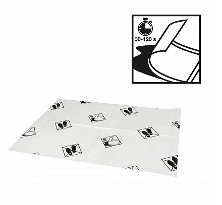 Absorbeert in 30-120 seconden tot 1200ml vloeistof, afhankelijk van de viscositeit. De vloeistof wordt na opname omgezet in gel. De mat blijft daardoor droog aanvoelen en lekt niet. De vlek wordt door de sterke absorptie niet vergroot en/of uitgesmeerd.