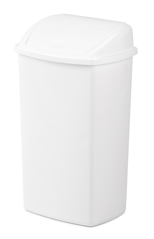 Kunststof afvalbak met swing deksel 50 liter Wit