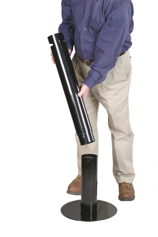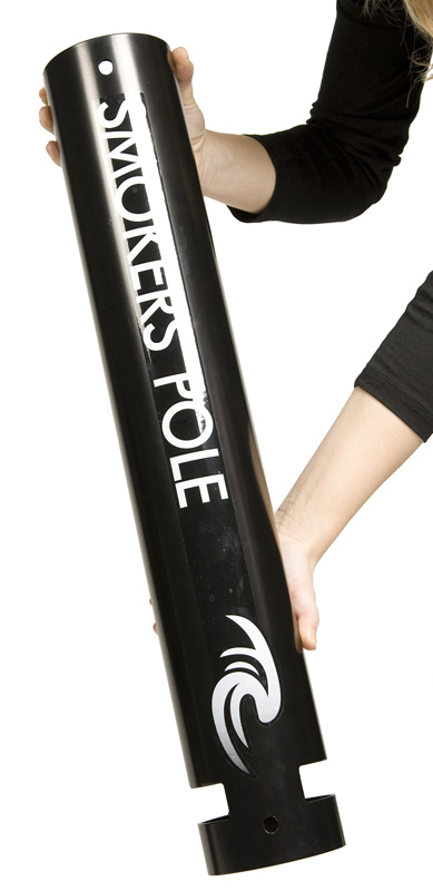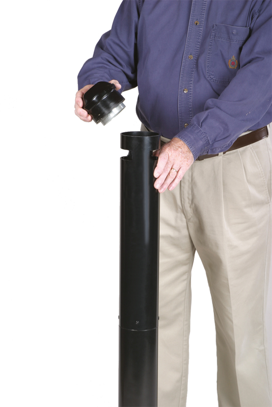Aluminium rookzuil op verzwaarde basis en met geïntegreerde doofplaat. Doorsnede zuil 10,2 cm.