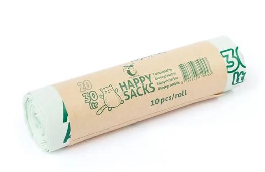 De zakken van HAPPY SACKS zijn kwalitatief zeer hoogwaardig. Ze worden gemaakt van o.a. zetmeel uit aardappels, suikerriet en mais, waardoor ze uitstekend biologisch kunnen worden afgebroken. Op iedere zak vindt u het Kiemplantlogo als kenmerk voor duurzaamheid.