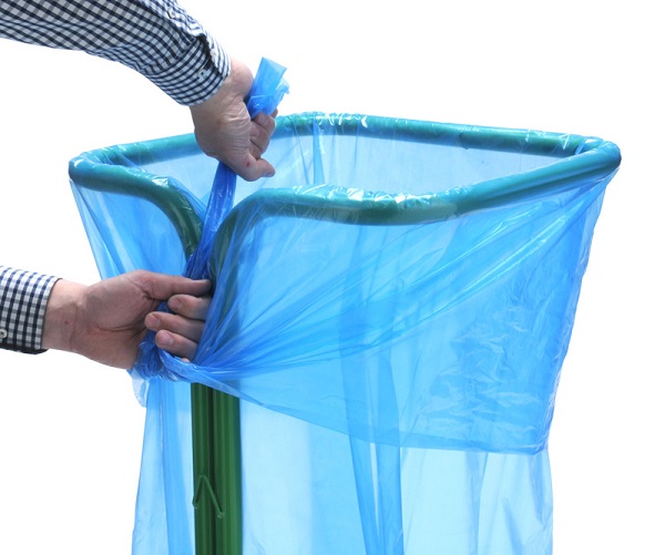 Metalen buisframe voor het inzamelen van folies, kunststoffen of EPS. Uniek zelfklemmend systeem waardoor de afvalzak blijft zitten zonder gebruik te hoeven maken van losse klemmen of clips.