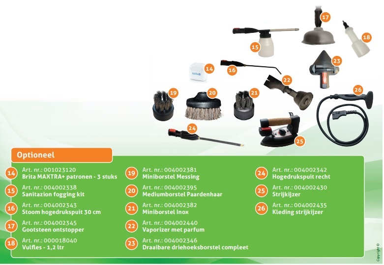 Bij een Greensteaming 5 en 6 zit standaard een accessoires pakket hier zit ook een vlakmop en benodigde accessoires bij om de vloer te reinigen.