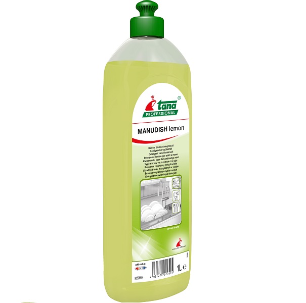 MANUDISH lemon heeft vetoplossende en emulgerende eigenschappen. Het is geschikt voor het reinigen van allerlei oppervlakken, zelfs efficiënt in koud water, wat kosten- en tijdbesparend is.