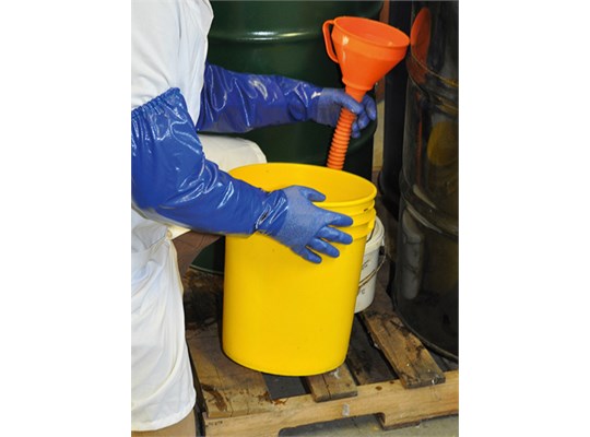 Showa NSK 26 is een extra lange veiligheidshandschoen tegen diverse chemische gevaren.