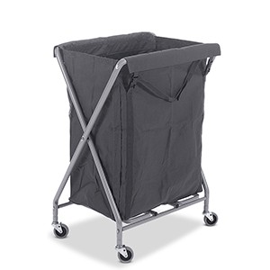 Opvouwbare waszakwagen. Het stalen Nutex buizenframe met vier 75mm zwenkwielen en een makkelijk af te halen 200 liter waszak.