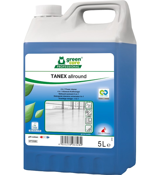 De aangenaam geurende TANEX allround is een 4 in 1 krachtige reiniger, licht alkalisch, met een goede bevochtiging voor de reiniging van alle waterbestendige vloeren en oppervlakken. Door de licht alkalische formule is TANEX allround uitermate geschikt voor de dagelijkse onderhoudsreiniging van zelfs zeer vervuilde plaatsen. Bij hardnekkige vervuiling kan TANEX allround gebruikt worden als doeltreffende intensieve reiniger.