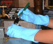 Na gebruik de handschoenen goed spoelen met water en afdrogen.