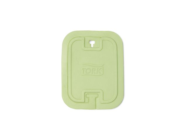 Groen schijfje. Verandert van kleur als vervanging nodig is, gemakkelijk onderhoud, frisse geur en geeft de toiletruimte een schoon gevoel