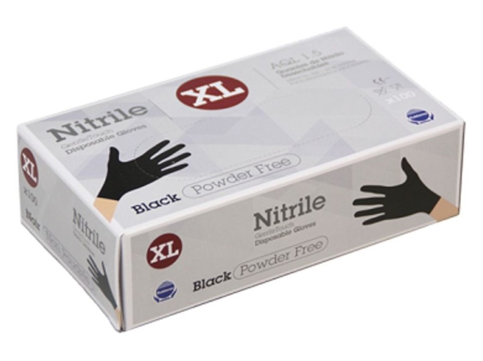 Nitrile handschoenen poedervrij Zwart maat XL doos 100 stuks.