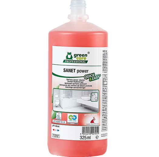 Sanet Power is een periodieke ontkalker voor sanitaire ruimtes en badkamers. Naast het dagelijkse onderhoud hoopt zich ook vaak een hoop kalk op op plekken die in aanraking komen met water. Met Sanet Power kan kalksteen worden weggehaald op alle zuurbestendige oppervlakken zoals tegels, chroom, porselein en aardewerk.