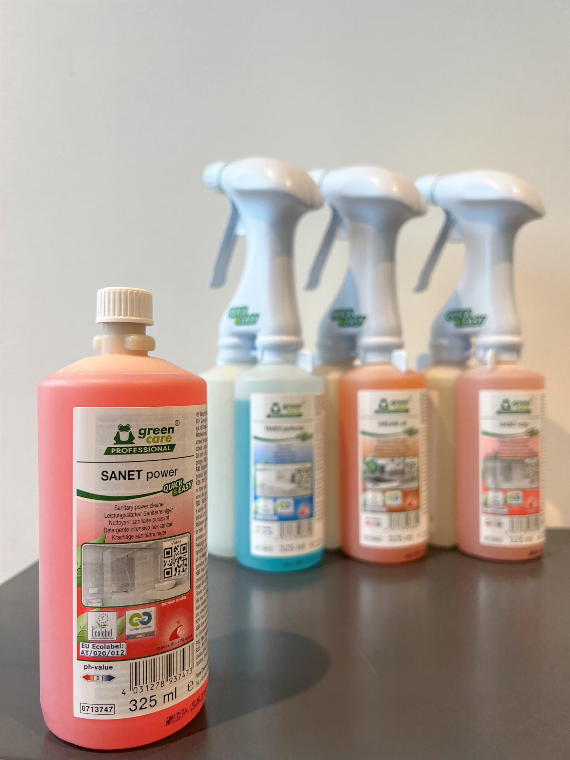 Deze krachtige sanitair is onderdeel van de quick en easy Greencare productlijn van Werner & Mertz. Naast deze concentraat is er ook concentraat in de vorm van een krachtige reiniger, keukenreiniger, interieurreiniger en sanet daily. Nooit meer overdoseren altijd kant en klaar producten bij de hand. Efficiënt, veilig en duurzaam!