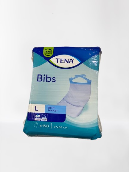 TENA slabben zijn handige wegwerpslabben. Gemakkelijk om en af te doen. Het opvanggedeelte aan de voorkant vangt etensresten gemakkelijk op, terwijl de bevestiging aan de hals ervoor zorgt dat de slab goed blijft zitten.
