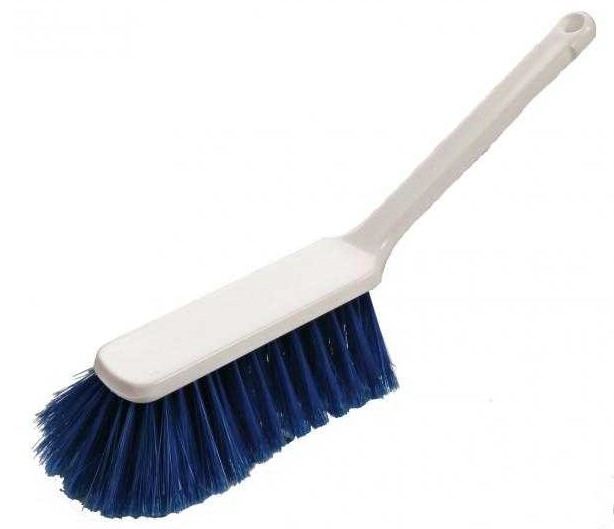 Handstoffer met zachte borstelharen. Beschikbaar in kleuren: blauw en groen om kleurcodering te faciliteren. Kleurcodering helpt kruisbesmetting te voorkomen en ondersteunt het waarborgen van voedselveiligheid.