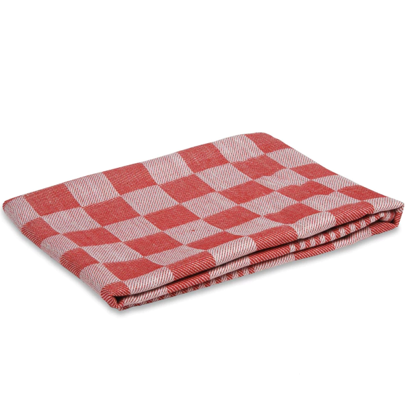 Theedoek, geblokt. Rood/Wit