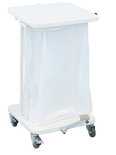 Verrijdbare afvalzakhouder met geruisloos sluitend deksel en voetpedaal (conform HACCP richtlijnen). Ideaal voor gebruik in ziekenhuizen, verpleeghuizen, professionele keukens & kitchenettes, kantoren, etc.. Stabiel frame met geruisloze, streepvrije en