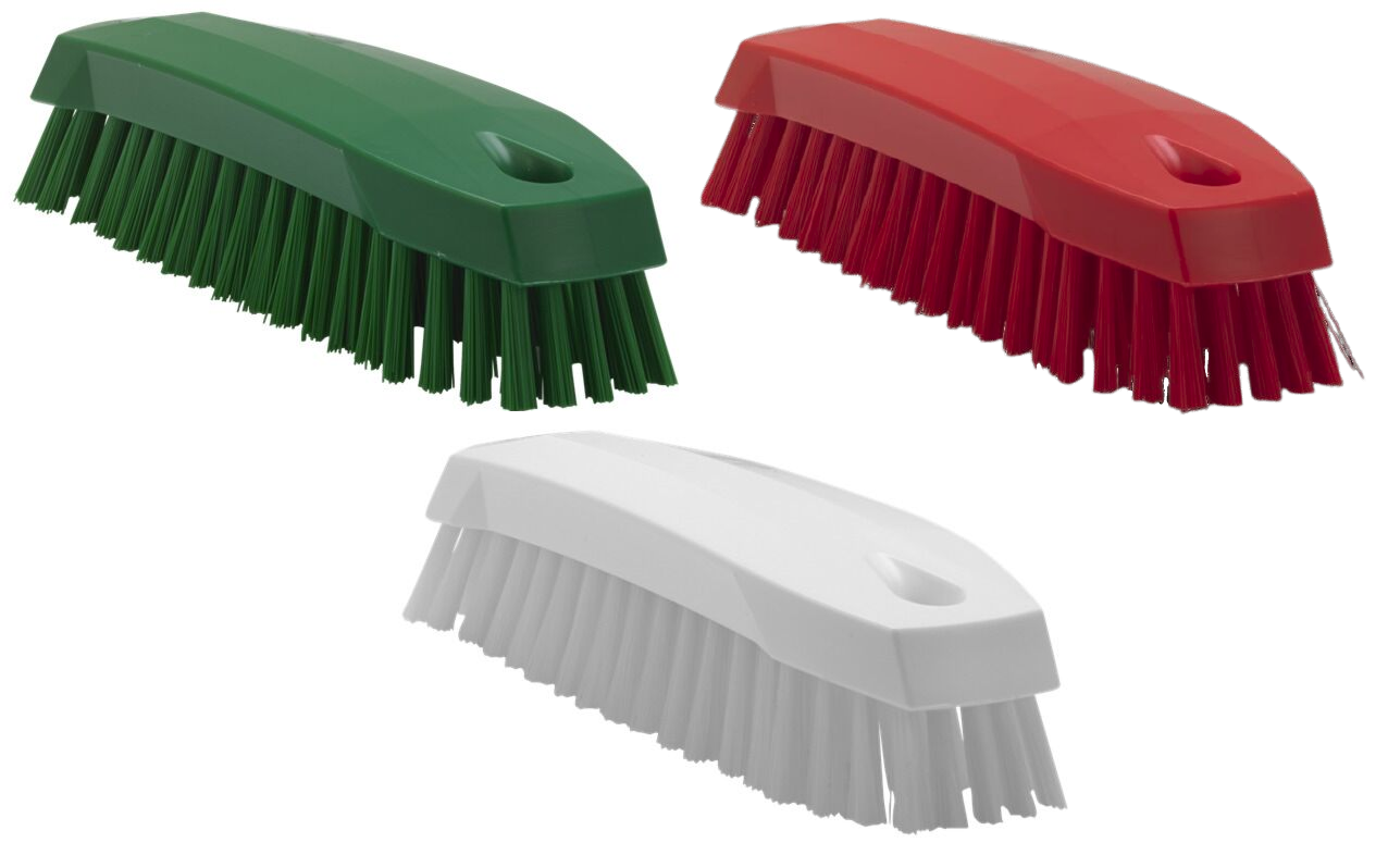 Vikan werkborstel met een handzaam en hygiënisch ontwerp en medium vezels van polyester. De borstel is geschikt voor diverse doeleinden, zoals het reinigen van snijplanken, containers en andere plekken waar voedsel verwerkt wordt. De Vikan handborstel is verkrijgbaar in diverse kleuren en is voorzien van een praktisch ophangoog, zodat je hem na gebruik eenvoudig kunt opbergen.