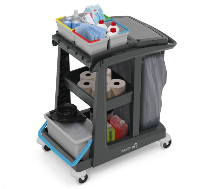 ECO-Matic is een nieuwe werkwagenlijn van Numatic. Er zijn meerdere modellen beschikbaar, afhankelijk van uw wensen, met optionele mopkits.